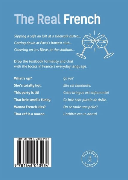 Learn all the French slang and current phrases you never learned in French class with this handy French-English phrasebook for modern travelers. Sipping a café au lait at a sidewalk bistro... Getting down at Paris's hottest club... Cheering on Les Bleus at the stadium... Drop the textbook formality and chat with the locals in France's everyday language. - What's up? Ça va? - She's totally hot. Elle est bandante. - This party is lit! Cette bringue est enflammée! - That brie smells funky. Ce brie sent putain de drôle. - Wanna French kiss? On se roule une pelle? - That ref is a moron. L'arbitre est un abruti.