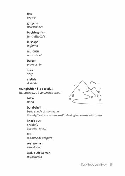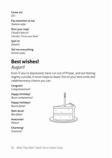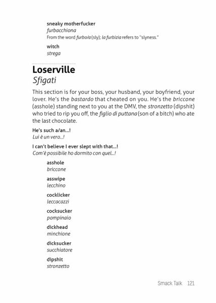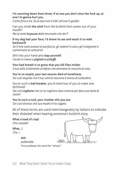 Sipping espresso at a sidewalk café... Toasting a pint of birra in the piazza... Cheering for Azzurri at lo Stadio Olimpico... Drop the textbook formality and chat with the locals in Italy's everyday language. ¿ What's up? Che c'è? ¿ I'm so plastered. Sono demolito/a. ¿ Do you wanna cuddle? Vuoi coccolarci? ¿ Nice body! Che corpo! ¿ I'm friggin' starving. Ho una fame da morti. ¿ Hey ref, you're a moron! Arbitro cretino!