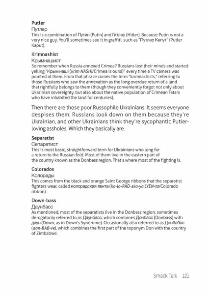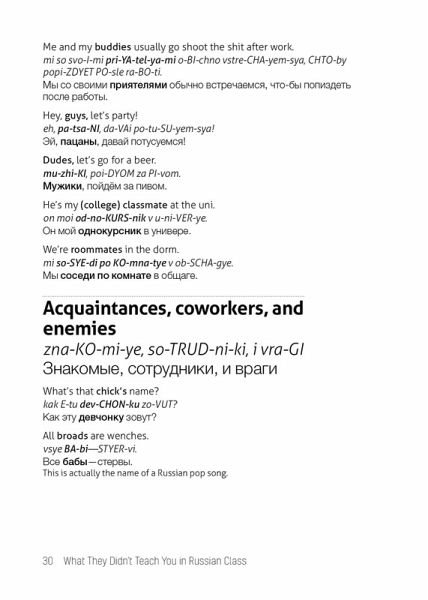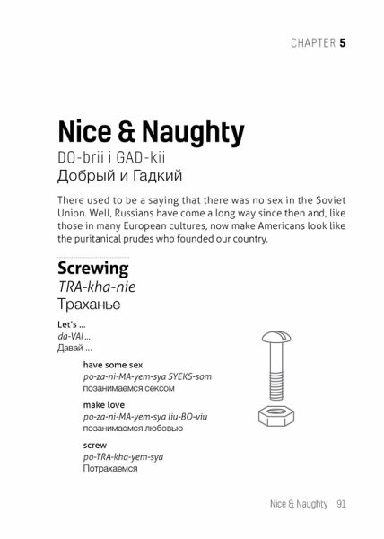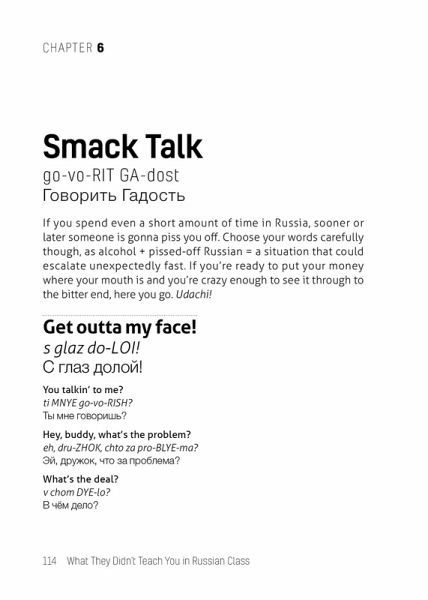 Learn all the Russian slang and current phrases that you never learned in class with this handy Russian-English phrasebook for modern travelers. Grubbing on pierogies at a a Russian deli... Pounding vodka shots at Moscow’s hottest dance club... Cheering for the local hockey team at the stadium... Drop the textbook formality and chat with the locals in Russia’s everyday language.