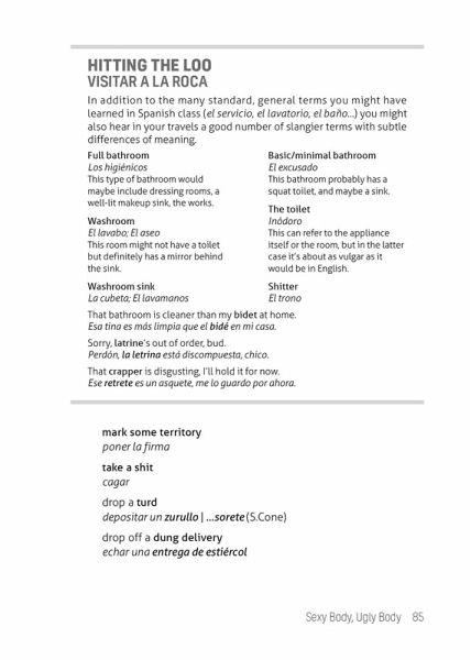Learn all the Spanish slang and up-to-date phrases you always wanted to know in this handy English-Spanish phrasebook for modern travelers. Chilling with an ice-cold cerveza at a beach bar... Dancing at CDMX’s hottest salsa club... Screaming your head off at the Copa América... Drop the textbook formality and chat with the locals in Latin America’s everyday language. • What’s up? ¿Qué tal? • What a hottie! ¡Que cuerazo! • Let’s pound these shots. Tráguemonos estos traguitos. • That ref sucks. Es una mierda ese árbitro/a. • I’m craving all-you-can-eat tacos. Me antoja un poco de taquiza libre. • Do you wanna hook up? ¿Quieres ligar?