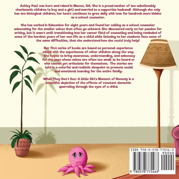 What They Don't See: A Little Girl's Moment of Honesty is a beautiful depiction of the effects of constant domestic quarreling through the eyes of a child. A little girls uses a moment of honesty to speak with her parents about their constant arguing and fighting and the effects it is having on her.