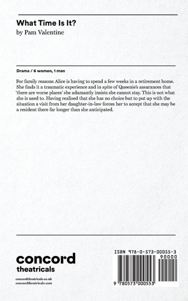 For family reasons Alice is having to spend a few weeks in a retirement home. She finds it a traumatic experience and in spite of Queenie's assurances that 'there are worse places' she adamantly insists she cannot stay. This is not what she is used to. Having realised that she has no choice but to put up with the situation a visit from her daughter-in-law forces her to accept that she may be a resident there far longer than she anticipated.