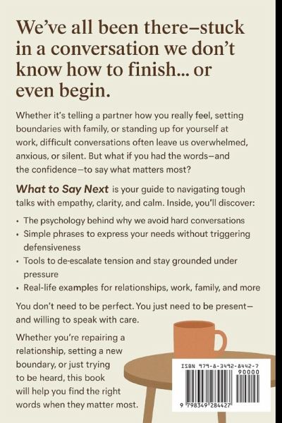 Do you freeze up when conversations get tense-worried you'll say the wrong thing? Do you avoid conflict to keep the peace, only to feel unheard and resentful later? Do you wish you had the right words to express how you really feel-without starting an argument? You're not alone-and you're more capable than you think. What to Say Next: Simple Phrases for Difficult Conversations is your go-to guide for navigating the awkward, emotional, and high-stakes moments that most people avoid. Instead of shutting down, lashing out, or walking away, you'll learn how to speak up in a way that builds trust, resolves tension, and brings clarity to even the hardest conversations. This isn't a book of scripts. It's a practical toolkit to help you feel calm, confident, and clear-no matter who you're talking to. Inside, you'll discover: Why we avoid hard conversations-and how to overcome fear and discomfort How to defuse defensiveness and keep conversations from spiraling Phrases that express your needs without sounding harsh or demanding What to say when you're hurt, but don't want to attack Real-life examples for talking to partners, family, friends, and coworkers The secret to staying grounded when emotions are high Whether you're setting boundaries, apologizing, asking for change, or supporting someone through grief-What to Say Next offers practical, heartfelt guidance for the conversations that matter most. Say what needs to be said. Stay true to yourself. Strengthen your relationships-one phrase at a time.