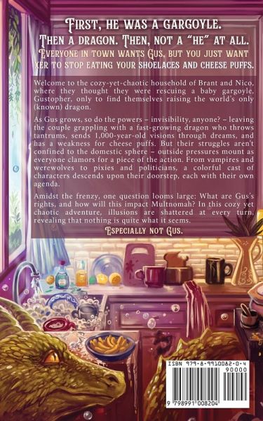 First, he was a gargoyle. Then, a dragon. Then, not a "he" at all. Everyone wants something from Gus, but you just want xer to stop eating your shoelaces and cheese puffs. Brant and Nico are busy raising the world's only known dragon. It's hard enough when xer throws tantrums and starts sending cryptic visions of the past to Nico in his dreams. Pressures mount from outside the domestic sphere as well, as the military, science factions, and even the public clamor for a piece of the action. From vampires and werewolves to pixies and politicians, a colorful cast descends upon their doorstep, each with their own agenda. Things get serious when the magical tribunal shows up with a command: humans cannot foster dragons.Should they turn Gus over or take their growing family and flee to somewhere safe? This book is the second in the series, but can be read as a standalone. Perfect for fans of Legends & Lattes, Cursed Cocktails, and Terry Pratchett's Discworld series.