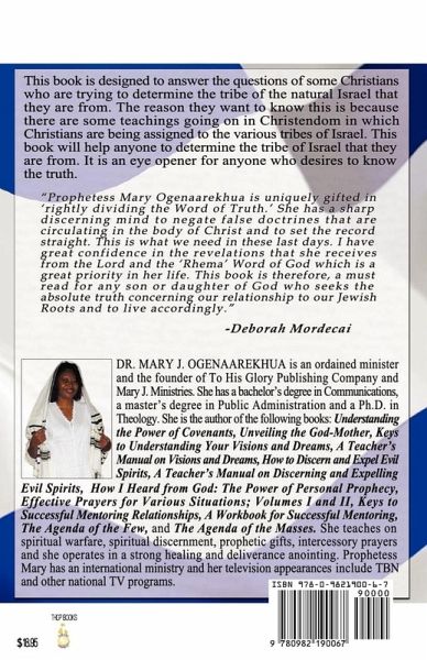 This book is designed to answer the questions of some Christians who are trying to determine the tribe of the natural Israel that they are from. The reason they want to know this is because there are some teachings going on in Christendom in which Christians are being assigned to the various tribes of Israel. This book will help anyone to determine the tribe of Israel that they are from. It is an eye opener for anyone who desires to know the truth.
