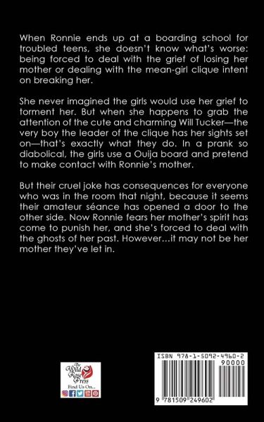 When Ronnie ends up at a boarding school for troubled teens, she doesn't know what's worse: being forced to deal with the grief of losing her mother or dealing with the mean-girl clique intent on breaking her. She never imagined the girls would use her grief to torment her. But when she happens to grab the attention of the cute and charming Will Tucker-the very boy the leader of the clique has her sights set on-that's exactly what they do. In a prank so diabolical, the girls use a Ouija board and pretend to make contact with Ronnie's mother. But their cruel joke has consequences for everyone who was in the room that night, because it seems their amateur séance has opened a door to the other side. Now Ronnie fears her mother's spirit has come to punish her, and she's forced to deal with the ghosts of her past. However...it may not be her mother they've let in.