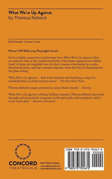 Winner! 2011 Rella Lossy Playwright's Award Set in a highly competitive architecture firm, What We're Up Against takes an explosive look at the complicated battle of the sexes raging across Cubicle Land. A funny yet insightful view of what it means to be female in a male-dominated career and one woman's response when she tires of slamming into the glass ceiling.