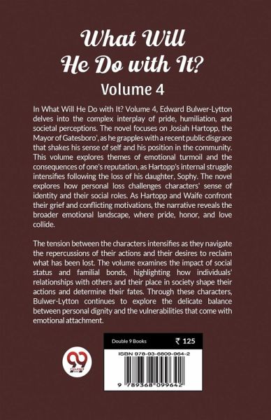 In What Will He Do with It? Volume 4, Edward Bulwer-Lytton delves into the complex interplay of pride, humiliation, and societal perceptions. The novel focuses on Josiah Hartopp, the Mayor of Gatesboro', as he grapples with a recent public disgrace that shakes his sense of self and his position in the community. This volume explores themes of emotional turmoil and the consequences of one's reputation, as Hartopp's internal struggle intensifies following the loss of his daughter, Sophy. The novel explores how personal loss challenges characters' sense of identity and their social roles. As Hartopp and Waife confront their grief and conflicting motivations, the narrative reveals the broader emotional landscape, where pride, honor, and love collide. The tension between the characters intensifies as they navigate the repercussions of their actions and their desires to reclaim what has been lost. The volume examines the impact of social status and familial bonds, highlighting how individuals' relationships with others and their place in society shape their actions and determine their fates. Through these characters, Bulwer-Lytton continues to explore the delicate balance between personal dignity and the vulnerabilities that come with emotional attachment.