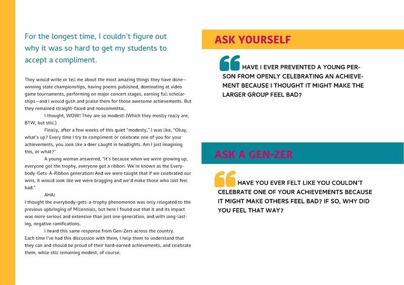When interacting with Gen-Zers, whether you be their parent, teacher, coach, relative, neighbor, or anything in between, the generational divide can seem larger than ever. Gen-Zers ignore you, they refuse to turn on their Zoom cameras, they procrastinate, they make strange jokes, they have short attention spans, and they take so many selfies. But that isn't all there is to Generation Z. What Would Gen-Z Do? will help you reach across the generational divide and learn how to navigate your relationships with Gen-Zers. In this guide to everything Gen-Z, John Schlimm, Harvard-trained educator and Gen-Z advocate, uses his extensive experience in working with the younger generation to offer some insight for anyone who's navigating the Gen-Z universe. In 51 chapters, you'll find quick, relatable lessons and activity ideas that crush the stereotypes and stigmas of Generation Z and shed light on who your Gen-Zers really are--intelligent, compassionate, courageous, and honest future leaders. Love them, appreciate them, and encourage them to rock on!