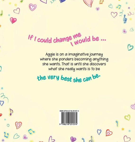 Join Aggie on her quest to answer one simple question, "What would I be I be if I could change me?". In this delightful children's book, Aggie's imagination runs wild and takes her on an transformative journey where she ponders becoming everything from a purple string guitar to a beautiful Princess named Katrina. During her ventures Aggie not only discovers the answer to her question, but she realizes just how AMAZING she can be. Self discovery can be a difficult journey at times, however this book helps young readers appreciate their unique characteristics and explore the joy and value in becoming the very best "YOU" can be. "Why should I be something or someone else? I'm uniquely designed to be myself."