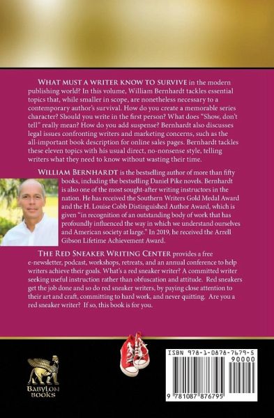 Are you a Red Sneaker Writer? What must a writer know to survive in the modern publishing world? In this volume, William Bernhardt tackles essential topics that, while smaller in scope, are nonetheless necessary to a contemporary author's survival. How do you create a memorable series character? Should you write in the first person? What does "Show, don't tell" really mean? How do you add suspense? Bernhardt also discusses legal issues confronting writers and marketing concerns, such as the all-important book description for online sales pages. Bernhardt tackles these eleven topics with his usual direct, no-nonsense style, telling writers what they need to know without wasting their time.