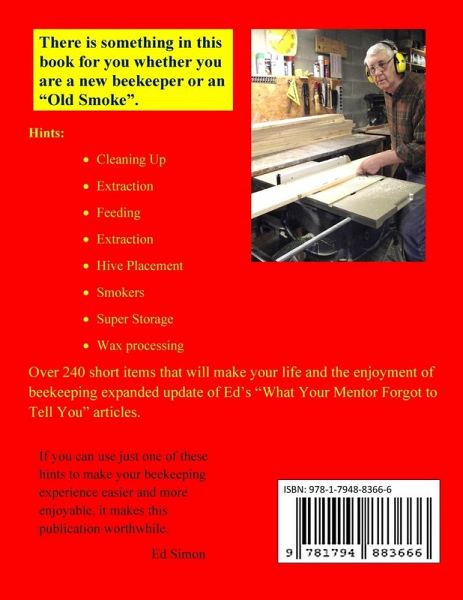What Your Mentor Forgot to Tell You is a collection of hints, terms and definitions that will help you in your beekeeping endeavor. This list is from various sources collected over twenty years of beekeeping. For the beginning beekeeper it will provide a reference to the huge number of terms that are tossed around by the more experienced beekeepers.
