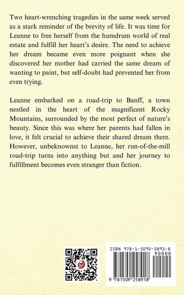 Two heart-wrenching tragedies in the same week served as a stark reminder of the brevity of life. It was time for Leanne to free herself from the humdrum world of real estate and fulfill her heart's desire. The need to achieve her dream became even more poignant when she discovered her mother had carried the same dream of wanting to paint, but self-doubt had prevented her from even trying. Leanne embarked on a road-trip to Banff, a town nestled in the heart of the magnificent Rocky Mountains, surrounded by the most perfect of nature's beauty. Since this was where her parents had fallen in love, it felt crucial to achieve their shared dream there. However, unbeknownst to Leanne, her run-of-the-mill road-trip turns into anything but and her journey to fulfillment becomes even stranger than fiction.