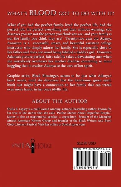 What if? What if you had the perfect family, lived the perfect life, had the perfect job, the perfect everything and then without warning, you discover you are not the person you think you are, and your family is not the family you think they are? Twenty-two year old Adanya Anniston is a successful, smart, and attractive assistant college instructor who simply adores her family. She is especially close to her father and does not mind being labeled a daddy's girl. But, Adanya's picture perfect, fairy tale life takes a devastating turn when she mistakenly overhears her mother disclose something so mind boggling that it crushes Adanya to the core of her spirit. Graphic artist, Bleak Blessinger, seems to be just what Adanya's troubled spirit needs, until she discovers that the handsome, green eyed, hunk just might have a connection to her family that can wreak even more havoc in her once idyllic life. What's Blood Got To Do With It? Before it's all over, Adanya Anniston might discover the answer.
