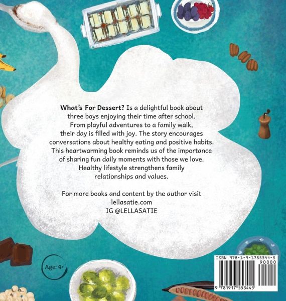 Book for a happy, healthy family. What's for Dessert? is a delightful book about three boys enjoying their time after school. From playful adventures to a family walk, their day is filled with joy. The story encourages conversations about healthy eating and positive habits. This heartwarming book reminds us of the importance of sharing fun daily moments with those we love. Healthy lifestyle strengthens family relationships and values.