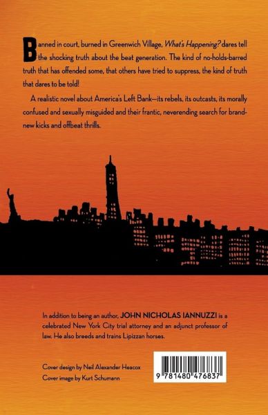 Banned in court, burned in Greenwich Village, What's Happening? dares tell the shocking truth about the beat generation. The kind of no-holds-barred truth that has offended some, that others have tried to suppress, the kind of truth that dares to be told! A realistic novel about America's Left Bank-its rebels, its outcasts, its morally confused and sexually misguided and their frantic, neverending search for brand-new kicks and offbeat thrills.