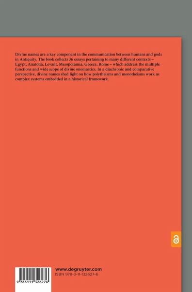 The volume collects 36 essays pertaining to many different contexts - Egypt, Anatolia, Levant, Mesopotamia, Greece, Rome - which address the multiple functions and wide scope of divine onomastics. Scrutinized in a diachronic and comparative perspective, divine names shed light on how polytheisms and monotheisms work as complex systems of divine and human agents embedded in an historical framework. Names imply knowledge and play a decisive role in rituals; they move between cities and regions, and can be translated; they interact with images and reflect the intrinsic plurality of divine beings.