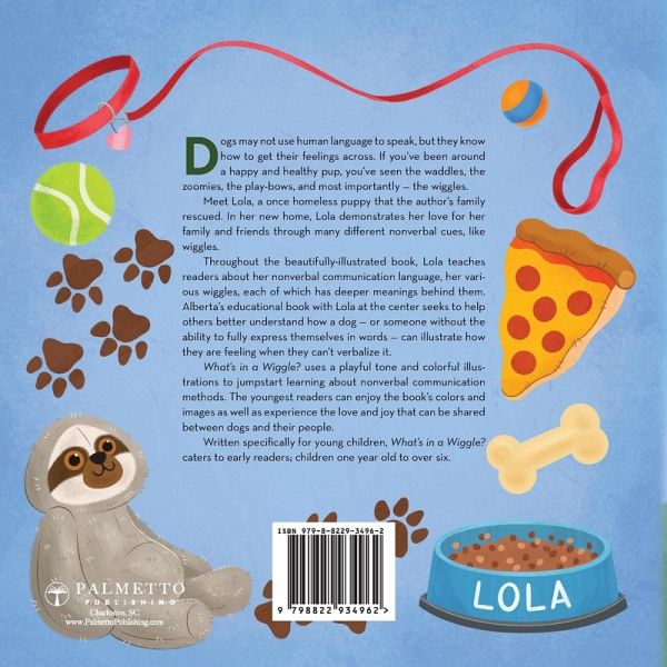 From new nonfiction children's book author Alberta Daggett comes a fun, vibrant, and educational book about the body language of a dog - and how children can learn nonverbal ways to express their feelings, too. Dogs may not use human language to speak, but they know how to get their feelings across. If you've been around a happy and healthy pup, you've seen the waddles, the zoomies, the play-bows, and most importantly - the wiggles. Meet Lola, a once homeless puppy that the author's family rescued. In her new home, Lola demonstrates her love for her family and friends through many different nonverbal cues, like wiggles. Throughout the beautifully-illustrated book, Lola teaches readers about her nonverbal communication language, her various wiggles, each of which have deeper meanings behind them. Alberta's educational book with Lola at the center seeks to help others better understand how a dog - or someone without the ability to fully express themselves in words - can illustrate how they are feeling when they can't verbalize it. What's in a Wiggle? uses a light-hearted tone and colorful illustrations to jumpstart learning about nonverbal communication methods. Not only does it cover communication, but the youngest readers can enjoy the book's colors, images, and introduction to the responsibilities of dog ownership as well as the love and joy that can be shared between dogs and their people. Written specifically for young children, What's in a Wiggle? caters to early readers; children one year old to over six. Nonverbal children and kids with dogs as pets will find the story especially relatable.