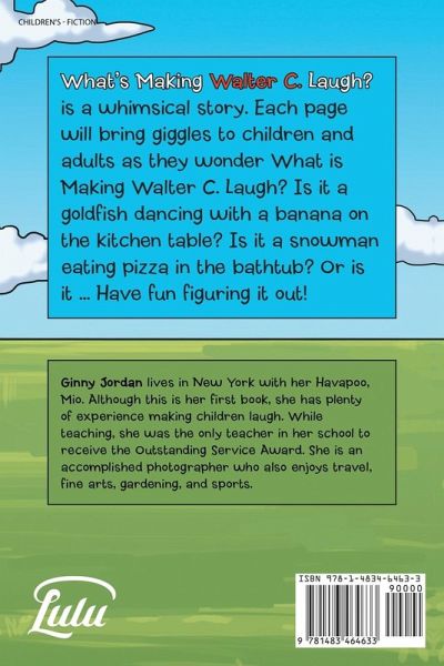 What's Making Walter C. Laugh? is a whimsical story. Each page will bring giggles to children and adults as they wonder What is Making Walter C. Laugh? Is it a goldfish dancing with a banana on the kitchen table? Is it a snowman eating pizza in the bathtub? Or is it ... Have fun figuring it out!