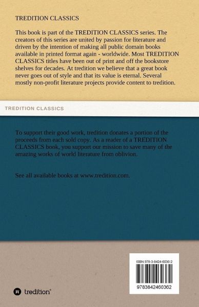 This book is part of the TREDITION CLASSICS series. The creators of this series are united by passion for literature and driven by the intention of making all public domain books available in printed format again - worldwide. At tredition we believe that a great book never goes out of style. Several mostly non-profit literature projects provide content to tredition. To support their good work, tredition donates a portion of the proceeds from each sold copy. As a reader of a TREDITION CLASSICS book, you support our mission to save many of the amazing works of world literature from oblivion.