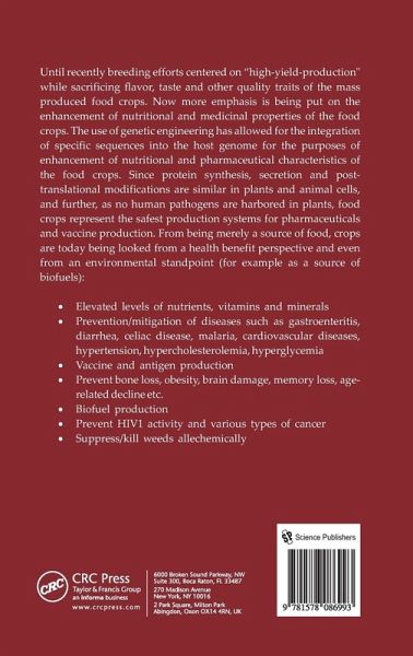 Until recently, breeding efforts in mass produced food crops centered on high yield production while sacrificing flavor, taste and other quality traits. Now, more emphasis is being placed on the enhancement of nutritional and medicinal properties of the food crops. Aside from merely being considered a source of food, crops are today being looked from a health benefit perspective and even from an environmental standpoint. This volume looks at the use of crops for a myriad of purposes, including the prevention and/or mitigation of various diseases, vaccine and antigen production, biofuel production, and the suppression of weeds.