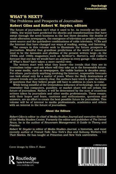 The future of journalism isn't what it used to be. As recently as the mid-1960s, few would have predicted the shocks and transformations that have swept through the news business in the last three decades: the deaths of many afternoon newspapers, the emergence of television as people's primary news source and the quicksilver combinations of cable television, VCRs and the Internet that have changed our ways of reading, seeing, and listening.The essays in this volume seek to illuminate the future prospects of journalism. Mindful that grandiose predictions of the world of tomorrow tend to be the fantasies and phobias of the present written large-in the 1930s and 1940s magazines such as Scribner's, Barron's, and Collier's forecast that one day we would have an airplane in every garage-the authors of What's Next? have taken a more careful view.The writers start with what they know-the trends that they see in journalism today-and ask where will they take us in the foreseeable future. For some media, such as newspapers, the visible horizon is decades away. For others, particularly anything involving the Internet, responsible forecasts can look ahead only for a matter of years. Where the likely destinations of present trends are not entirely clear, the authors have tried to pose the kinds of questions that they believe people will have to address in years to come.While being mindful of the tremendous influence of technology, one must remember that computers, punditry, or market share will not ordain the future of journalism. Rather, it will be determined by the sum of countless actions taken by journalists and other media professionals. These essays, with their hopes and fears, cautions and enthusiasms, questions and answers, are an effort to create the best possible future for journalism. This volume will be of interest to media professionals, academics and others with an interest in the future of journalism.