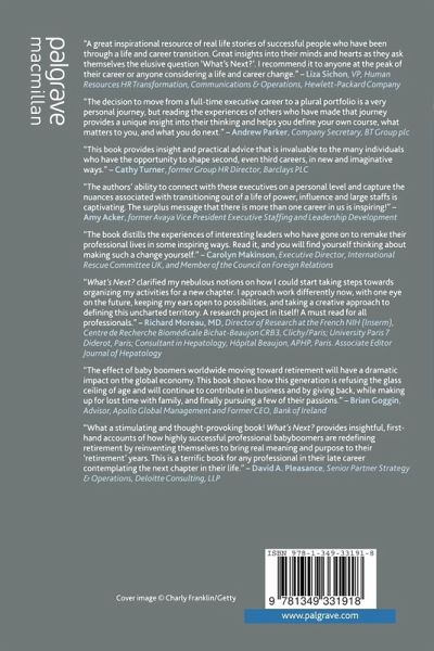 'What's Next? clarified my nebulous notions on how I could start taking steps towards organizing my activities for a new chapter. I approach work differently now, with one eye on the future, keeping my ears open to possibilities, and taking a creative approach to defining this uncharted territory. A research project in itself! A must read for all professionals.' Richard Moreau, MD, Director of Research at the French NIH (Inserm), Centre de Recherche Biomédicale Bichat-Beaujon CRB3, Clichy/Paris; University Paris 7