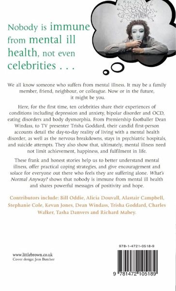These frank and honest stories help us to better understand mental illness, offer practical coping strategies, and give encouragement and solace for everyone out there who feels they are suffering alone. What's Normal Anyway? shows that nobody is immune from mental ill health and shares powerful messages of positivity and hope.
