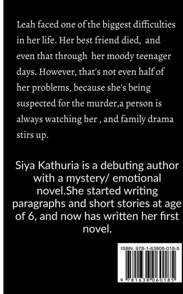 Leah faced one of the biggest diffculties in her life. Her best friend died, and even that through her moody teenager days.However, that's not even half of her problems, because she's being suspected for the murder,a person is always watching her, and family drama stirs up.