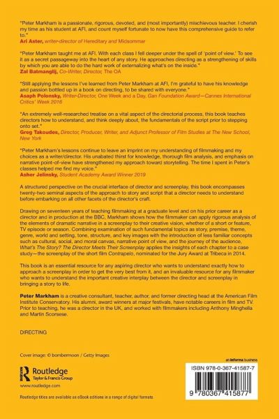 This book is an essential resource for any aspiring director who wants to understand exactly how to approach a screenplay in order to get the very best from it, and an invaluable resource for any filmmaker who wants to understand the important creative interplay between the director and screenplay in bringing a story to life.