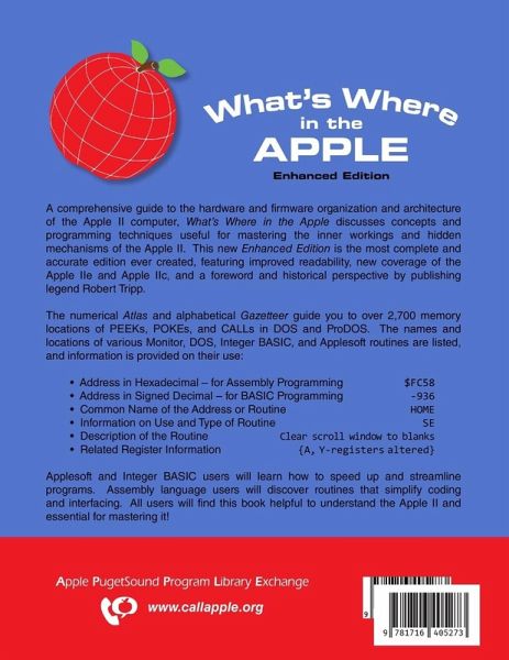 What's Where in the APPLE - Enhanced Edition: Volume 1 - Guide Volume 1: A comprehensive guide to the hardware and firmware organization and architecture of the Apple II computer, What's Where in the Apple discusses concepts and programming techniques useful for mastering the inner workings and hidden mechanisms of the Apple II (in Volume 1). This new Enhanced Edition is the most complete and accurate edition ever created, featuring improved readability, new coverage of the Apple IIe and Apple IIc, and a forward and historical perspective by publishing legend Robert Tripp. The numerical Atlas and alphabetical Gazetteer (in Volume 2) guide you to over 2,700 memory locations of PEEKs, POKEs, and CALLs in DOS and ProDOS. Applesoft and Integer BASIC users will learn how to speed up and streamline programs. Assembly language users will discover routines that simplify coding and interfacing. All users will find this book helpful to understand the Apple II and essential for mastering it!