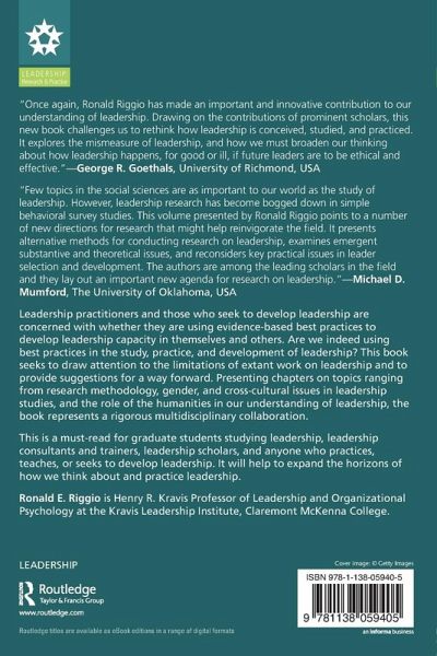 "Few topics in the social sciences are as important to our world as the study of leadership. However, leadership research has become bogged down in simple behavioral survey studies. This volume presented by Ronald Riggio points to a number of new directions for research that might help reinvigorate the field. It presents alternative methods for conducting research on leadership, examines emergent substantive and theoretical issues, and reconsiders key practical issues in leader selection and development. The authors are among the leading scholars in the field and they lay out an important new agenda for research on leadership." - Michael D. Mumford, The University of Oklahoma, USA