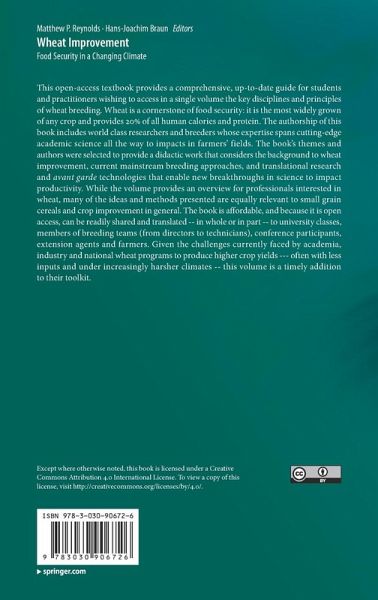 This open-access textbook provides a comprehensive, up-to-date guide for students and practitioners wishing to access in a single volume the key disciplines and principles of wheat breeding. Wheat is a cornerstone of food security: it is the most widely grown of any crop and provides 20% of all human calories and protein. The authorship of this book includes world class researchers and breeders whose expertise spans cutting-edge academic science all the way to impacts in farmers' fields. The book's themes and authors were selected to provide a didactic work that considers the background to wheat improvement, current mainstream breeding approaches, and translational research and avant garde technologies that enable new breakthroughs in science to impact productivity. While the volume provides an overview for professionals interested in wheat, many of the ideas and methods presented are equally relevant to small grain cereals and crop improvement in general. The book is affordable,and because it is open access, can be readily shared and translated -- in whole or in part -- to university classes, members of breeding teams (from directors to technicians), conference participants, extension agents and farmers. Given the challenges currently faced by academia, industry and national wheat programs to produce higher crop yields --- often with less inputs and under increasingly harsher climates -- this volume is a timely addition to their toolkit.
