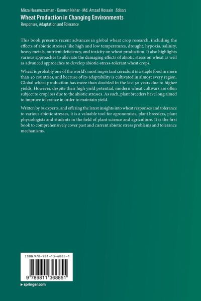 Written by 85 experts, and offering the latest insights into wheat responsesand tolerance to various abiotic stresses, it is a valuable tool for agronomists, plant breeders, plant physiologists and students in the field of plant science and agriculture. It is the first book to comprehensively cover past and current abiotic stress problems and tolerance mechanisms.