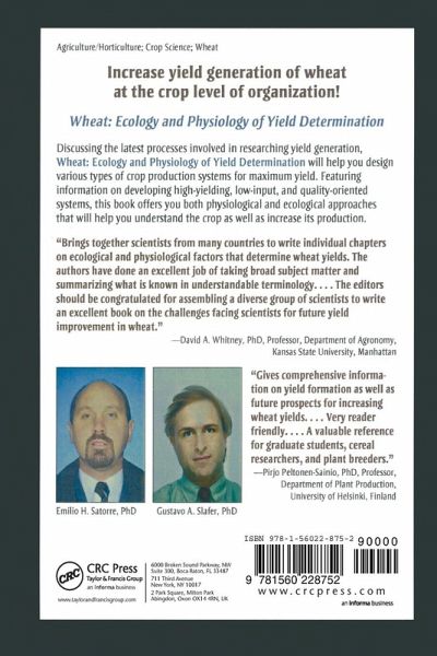 Discussing the latest processes involved in researching yield generation, Wheat: Ecology and Physiology of Yield Determination will help you design various types of crop production systems for maximum yield. Featuring information on developing high-yielding, low-input, and quality-oriented systems, this book offers you both physiological and ecological approaches that will help you understand the crop as well as increase its production.