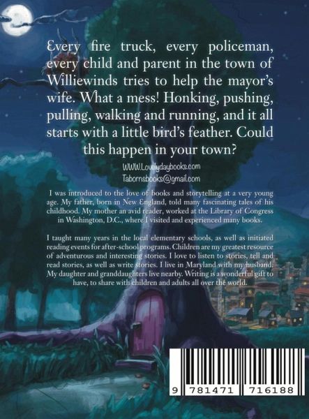 A wild and crazy day got started with a tiny feather. The whole town started screaming and running, traffic piled up and all because NO ONE stayed calm. Debbie Taborn is the author of several children's books. ¿ Makena's Fire ¿ Donia and Her Marvelous Bag of Cents ¿ Donia and Her Amazing Undersea Adventure ¿ When a Drip Dropped Debbie Taborn was introduced to the love of books and storytelling at a very young age. She enjoys writing stories that capture the creative minds of children. Her enchanting stories gently bring young readers to consider, Cultural acceptance of all people, Environmental responsibility for our earth, and Women's empowerment. As a retired elementary teacher, Debbie enjoys writing, and traveling to schools to share the joy of reading and writing. She was a teacher and taught reading to youngsters for many years. This author loves to listen to stories, tell and read stories, as well as write stories. Children are her greatest resource of adventurous and interesting stories. LovelyDayBooks.com Tabornsbooks@gmail.com