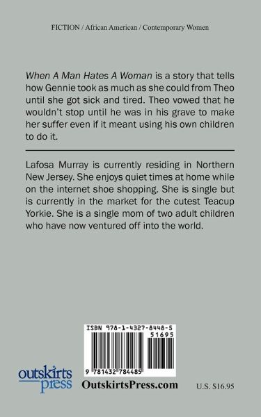 WHEN A MAN HATES A WOMAN Gennie was a young lady from the south who came to a small town in New Jersey where she met Theo. Although he was eight years her senior they dated and lived like a married couple this was up until all hell broke loose. Gennie had finally gotten to her breaking point and left Theo with her children although he wasnt happy with this decision that she had made he made it his business to make her life a living hell even if it meant using his own children to do it. Then he did the most hurtful thing that even Gennie would not expect from him and there was no forgiveness for that at all.