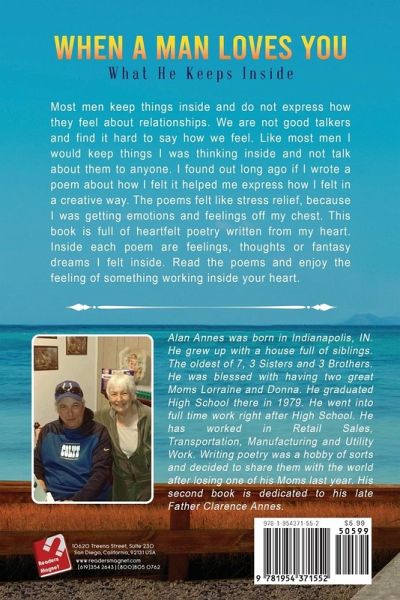 Most men keep things inside and do not express how they feel about relationships. We are not good talkers and find it hard to say how we feel. Like most men I would keep things I was thinking inside and not talk about them to anyone. I found out long ago if I wrote a poem about how I felt it helped me express how I felt in a creative way. The poems felt like stress relief, because I was getting emotions and feelings off my chest. This book is full of heartfelt poetry written from my heart. Inside each poem are feelings, thoughts or fantasy dreams I felt inside. Read the poems and enjoy the feeling of something working inside your heart.