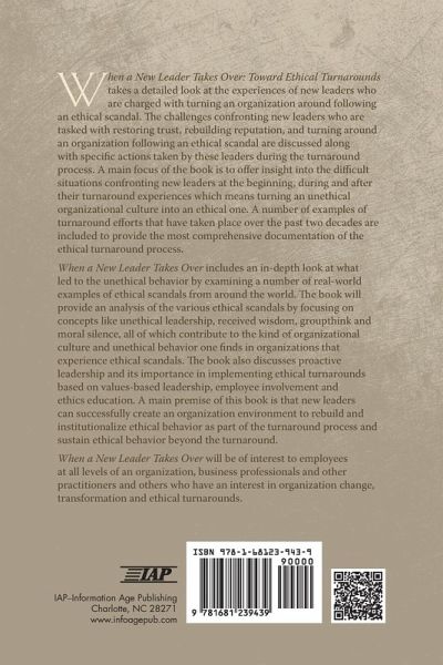 When a New Leader takes Over: Toward Ethical Turnarounds takes a detailed look at the experiences of new leaders who are charged with turning an organization around following an ethical scandal. The challenges confronting new leaders who are tasked with restoring trust, rebuilding reputation, and turning around an organization following an ethical scandal are discussed along with specific actions taken by these leaders during the turnaround process. A main focus of the book is to offer insight into the difficult situations confronting new leaders at the beginning, during and after their turnaround experiences which means turning an unethical organizational culture into an ethical one. A number of examples of turnaround efforts that have taken place over the past two decades are included to provide the most comprehensive documentation of the ethical turnaround process. The book includes an in-depth look at what led to the unethical behavior by examining a number of real-world examples of ethical scandals from around the world. The book will provide an analysis of the various ethical scandals by focusing on concepts like unethical leadership, received wisdom, groupthink and moral silence, all of which contribute to the kind of organizational culture and unethical behavior one finds in organizations that experience ethical scandals. The book also discusses proactive leadership and its importance in implementing ethical turnarounds based on values-based leadership, employee involvement and ethics education. A main premise of this book is that new leaders can successfully create an organization environment to rebuild and institutionalize ethical behavior as part of the turnaround process and sustain ethical behavior beyond the turnaround. The book will be of interest to employees at all levels of an organization, business professionals and other practitioners and others who have an interest in organization change, transformation and ethical turnarounds.