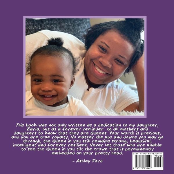 ¿This book was not only written as a dedication to my daughter, Zaria, but also as a forever reminder to all mothers and daughters to know they are Queens. Your worth is precious, and you are true royalty. No matter the ups and downs you may go through, the Queen in you still remains strong, beautiful, intelligent, and forever resilient. Never let those who are unable to see the Queen in you tilt the crown that is permanently embedded on your pretty head. This book was written to uplift and inspire. When mothers and daughters read this book it will fill their hearts with pure joy and love. This book is a constant reminder to all mothers and daughters that their bond is truly made to be unbreakable. This book spreads the importance of self-love and seeing the true inner beauty within yourself. This book spreads the message to all mothers and daughters that they are designed uniquely and abundantly. Their presence is a necessity, and they hold a tremendous and powerful value in this world. This book encourages mothers to lead their daughters to always believe in themselves. Reading this book will help them remember the Queen inside of them will always lead them down the right path.
