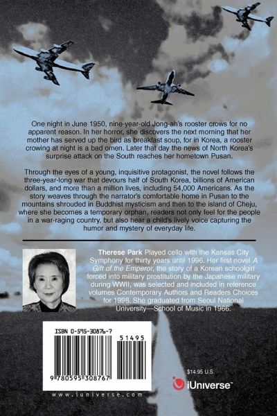 Therese Park came to the U.S. in October of 1966 to perform with the Kansas City Philharmonic [1] (now the Kansas City Symphony) in its cello section. After 30 years, she retired and began writing fulltime. Her first novel A Gift of the Emperor (published by Spinsters Ink, 1997) deals with Korean sex slaves, mostly schoolgirls, including Soon-ah, the heroin of her novel, forced into military prostitution by the Japanese military during WWII while Japan ruled most of Asia and the Pacific. Park was a featured author at three national bookfairs in 1998--the LA Bookfair, Miami Bookfair, and Heartland Bookfair. Park's second novel When a Rooster Crows at Night: A Child's Experience of the Korean War (iUniverse 2004) is based on Park's own experience as a child living through the horror of the three-year war (1950-1953), which, in a real sense, has never ended. Her third book The Northern Wind: Forced Journey to North Korea (iUniverse 2012) is told by an 18-year-old war orphan working with a group named 'Hope Community' that helped the islanders with the government's New-Village Movement on a South Korean island. One day, she accidentally stumbles across a battalion of disguised North Korean commandos in a remote area, and reports to the group commander. She becomes a South Korean spy and leaves for North Korea, with a mission to accomplish. In 2006, Park wrote Midwest Voices columns for The Kansas City Star-Opinion Page, and between 2009 and 2016, she wrote columns for the Star-Johnson County Neighborhood News. She is a mother of three daughters and a grandmother of four grandchildren born in the U.S. Links: ------ [1] https://en.wikipedia.org/wiki/Kansas_City_Symphony