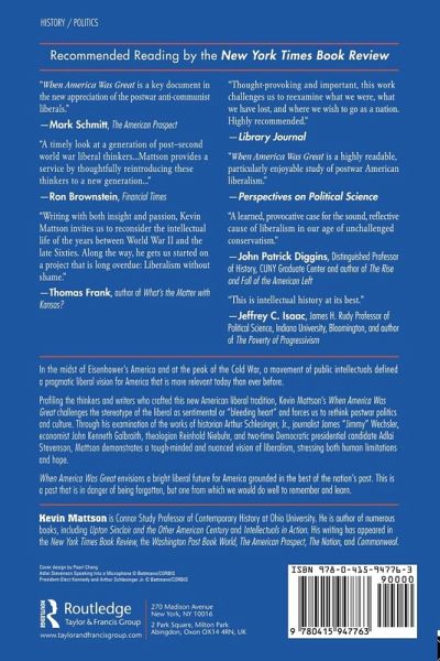 A sweeping intellectual history that will make us rethink postwar politics and culture, When America Was Great profiles the thinkers and writers who crafted a new American liberal tradition in a conservative era -- from historians Arthur Schlesinger, Jr., and C. Vann Woodward, to economist John Kenneth Galbraith and theologian Reinhold Niebuhr. A compelling tale that will redefine the word "liberal" for a new generation, Mattson retraces the intellectual journey of these towering figures. They served in the Second World War. They opposed communism but also wanted to make America's poor visible to the affluent society. Contrary to those who characterize liberals as naïve or sentimental "bleeding hearts," they had a tough-minded and nuanced vision that stressed both human limitations and hope. They felt America should stand for something more than just a strong economy.