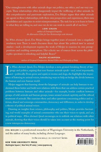 Winner, 2020 ASCA Book Award, given by the Amsterdam School of Cultural Analysis A groundbreaking argument for the political rights of animals In When Animals Speak, Eva Meijer develops a new, ground-breaking theory of language and politics, arguing that non-human animals speak-and, most importantly, act-politically. From geese and squid to worms and dogs, she highlights the importance of listening to animal voices, introducing ways to help us bridge the divide between the human and non-human world. Drawing on insights from science, philosophy, and politics, Meijer provides fascinating, real-world examples of animal communities who use their voices to speak, and act, in political ways. When Animals Speak encourages us to rethink our relations with other animals, showing that their voices should be taken into account as the starting point for a new interspecies democracy.