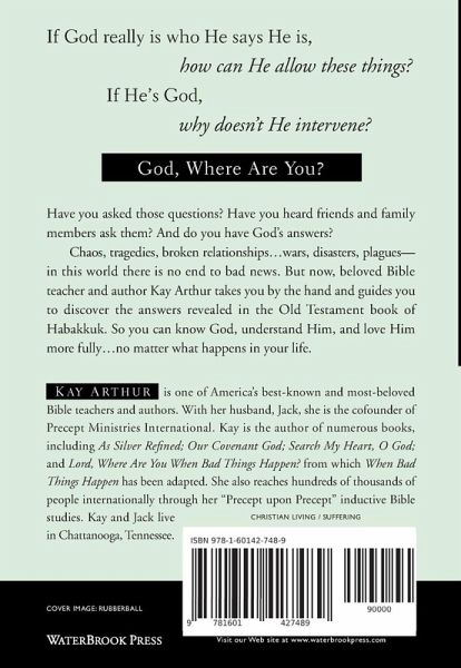 Chaos, tragedies, broken relationships, wars, disasters, plagues-in this world there is no end to bad news. Hard questions haunt us: If God really is who He says He is, how can He allow these things? If He's God, why doesn't He intervene? If we can't find hope and help in the midst of these tough times, those questions can crush our spirit and deaden our faith. But now, beloved Bible teacher and author Kay Arthur guides readers to discover the answers revealed in the Old Testament book of Habakkuk, so that they can know God, understand Him, and love Him more fully, no matter what happens. In When Bad Things Happen, Kay Arthur shares bold answers to those questions and helps readers solve the dilemma. But more than that, they'll encounter God and come to understand, love, and appreciate Him more deeply. They'll discover that God is big enough to handle their questions, and strong enough to deliver them from pain and doubt. And as a result, they'll be equipped with strength and courage so they can minister to others who wrestle with the same questions.