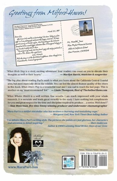 Do birds sing for fun or are do they actually have a complex system of aural communication? Artist Miranda Jones, doing research for a commissioned painting, is delighted by their songs but increasingly intrigued to understand what they seem to be saying. She's excited to learn more both when she hikes with an expert and when she kayaks on the Columbia River in Oregon. Yet imagine her surprise when she hears what she thinks is a bird call but turns out to be a woman screaming! Can Miranda help without putting herself in danger? Or have the avians fooled her . . . When Birds Sing? Though the e-book stands alone, it also is a midquel for Book 3 of the Milford-Haven Novels, the critically acclaimed, popular series, a multi-generational saga. Based on Purl's BBC Radio drama Milford-Haven U.S.A.