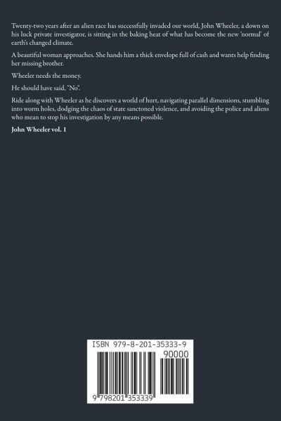 Twenty-two years after an alien race has successfully invaded our world, John Wheeler, a down on his luck private investigator, is sitting in the baking heat of what has become the new 'normal' of earth's changed climate. A beautiful woman approaches. She hands him a thick envelope full of cash and wants help finding her missing brother. Wheeler needs the money. He should have said, "No". Ride along with Wheeler as he discovers a world of hurt, navigating parallel dimensions, stumbling into worm holes, dodging the chaos of state sanctoned violence, and avoiding the police and aliens who mean to stop his investigation by any means possible. John Wheeler vol. 1