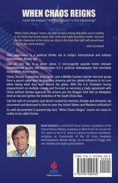 A political thriller set against the current international and military environment. It highlights relevant constitutional issues and DC shenanigans. China, Russia, a drug cartel, and an Islamic terrorist group form a secret cabal bent on shocking the US, taking what they want across the globe. With the President focused on securing a trade agreement with China without Senate approval, his actions put Reagan Test Site on Kwajalein Atoll at risk and ignite the tinderbox of the South China Sea. Colonel Seth Grayson and senior officers at the Pentagon must weigh their oath of office to support…mehr