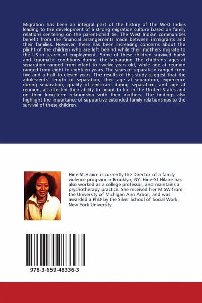 Migration has been an integral part of the history of the West Indies leading to the development of a strong migration culture based on family relations centering on the parent-child tie. The West Indian communities benefit from the financial arrangements made between immigrants and their families. However, there has been increasing concerns about the plight of the children who are left behind while their mothers migrate to the US in search of employment. Some of these children survived harsh and traumatic conditions during the separation. The children's ages at separation ranged from infant to twelve years old, while age at reunion ranged from eight to eighteen years. The years of separation ranged from five and a half to eleven years. The results of this study suggest that the adolescents' length of separation, their age at separation, experience during separation, quality of childcare during separation, and age at reunion, all affected their ability to adapt to life in the United States and on their long-term relationship with their mothers. The findings also highlight the importance of supportive extended family relationships to the survival of these children.