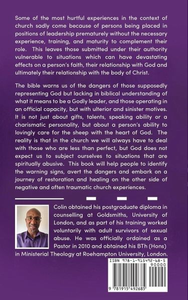 The bible warns of the dangers of church leaders representing God, but lacking a biblical understanding of Godly leadership, which includes those operating in an official capacity, but having ulterior and sinister motives. This leaves those submitted under their influence vulnerable to situations that can have devastating effects on a person's faith, their relationship with God, and ultimately their relationship with the body of Christ. This book will help people to identify the warning signs, avoid the dangers and embark on a journey of restoration and healing on the other side of hurtful and sometimes sadly, deeply traumatic church experiences.