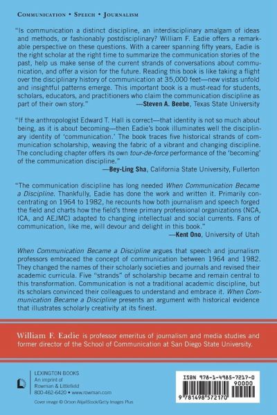 When Communication Became a Discipline describes how speech and journalism professors embraced the concept of communication as central to their scholarly work. It tells the story of how they transformed themselves and established an academic discipline of communication.